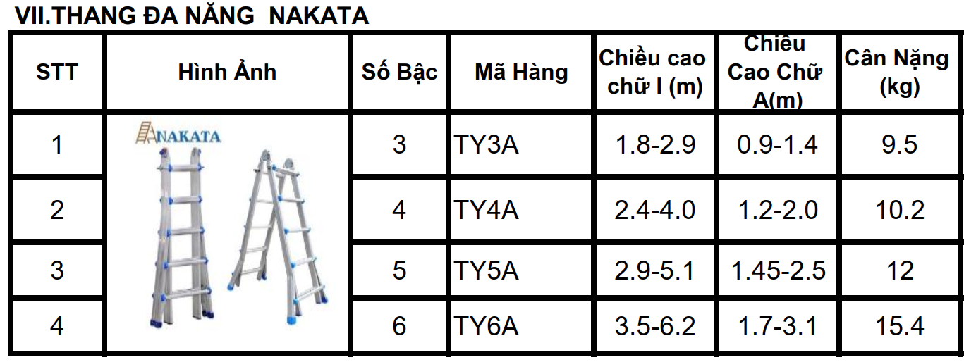 - Công ty NAKATA VIET NAM là Nhà Nhập khẩu và phân phối chính thức tại THÀNH PHỐ HỒ CHÍ MINH uy tín về dịch vụ cho sản phẩm THANG NHÔM NAKATA chính hãng